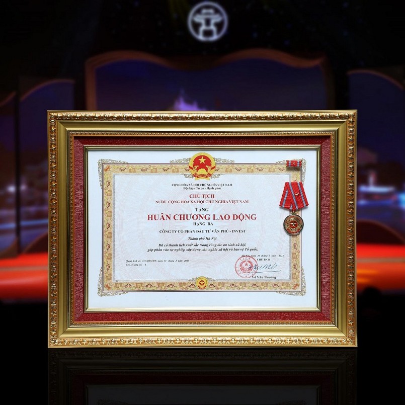 | Văn Phú - Invest cũng liên tục có mặt trong các bảng xếp hạng uy tín và vinh dự đón nhận Huân chương Lao động hạng Ba do Đảng, Nhà nước trao tặng. |