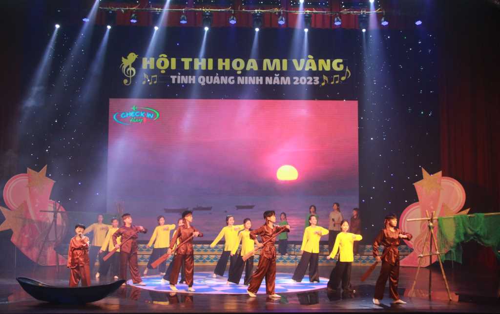 Hội thi Họa mi vàng tỉnh Quảng Ninh năm 2023 với chủ đề “Vang ca tiếng hát - Tự hào thiếu nhi Quảng Ninh” với sự tham gia của nhiều tiết mục và thể loại song ca và đơn ca.