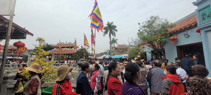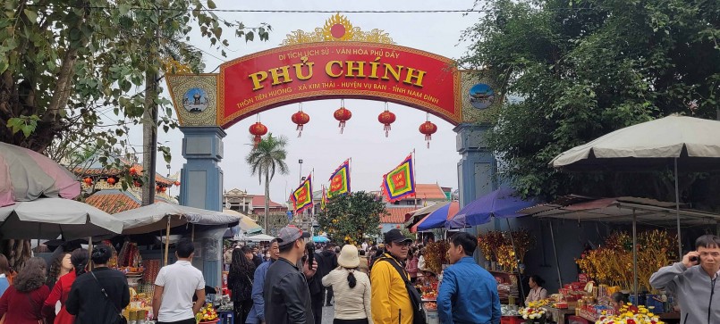 | Du khách về đi lễ tại Phủ Chính - Phủ Dày. |