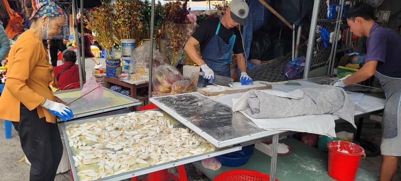 | Sản xuất trực tiếp đặc sản Kẹo Dồi tại chợ Viềng. |