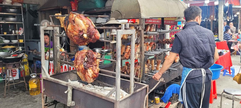 | Nhiều quầy hàng bán đặc sản bê thui phục vụ du khách. |