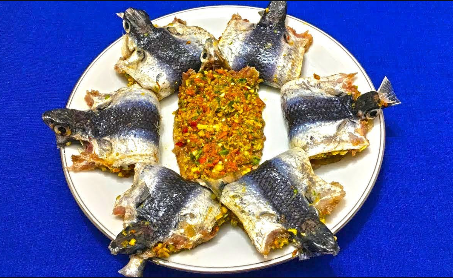 Để cá không bị tanh, khi ăn không bị ngứa, người dân sẽ ngâm cá với 1 muỗng rượu trắng, cùng nước muối loãng khoảng 10 - 15 phút, sau đó vớt ra để ráo nước. Chọn khoảng giữa sống lưng con cá và bẻ đôi rồi gập lại gọn gàng sau khi nhồi gia vị vào bụng.