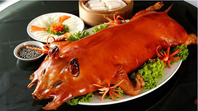 Lợn sữa quay: Sử dụng các loại gia vị đặc trưng núi rừng, lợn sữa đem quay trên than hồng vàng rụm, thơm lừng. Cắn miếng thịt sẽ thấy vị ngọt thịt nướng vừa chín tới, vị thơm từ các lá rừng, đậm đà gia vị tẩm ướp.