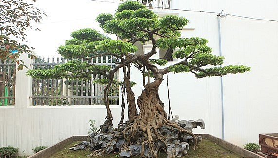 Siêu cây cảnh đáp ứng được 3 yếu tố quan trọng nhất gồm: Cổ - Kỳ - Mỹ. Từ các rễ cây đến thân, bệ cây khúc khuỷu rất già và cổ kính. Các bông tán thì được tạo, tỉa rất ăn ý.
