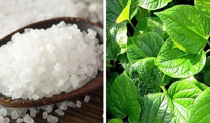Bước 3: Đổ nước lá lốt ra một cái chậu, bỏ thêm 2 thìa muối hạt và khuấy đều cho tan hết muối.