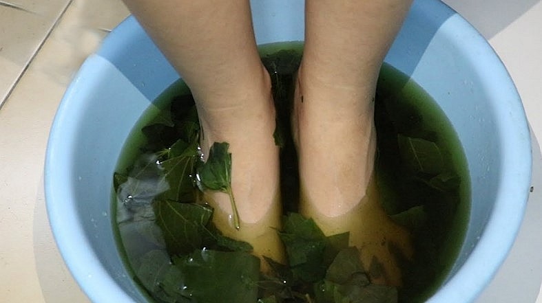 Bước 4: Để cho nước lá lốt nguội bớt rồi cho hai bàn chân vào ngâm trong khoảng 20 phút thì nhấc ra và dùng khăn mềm lau sạch chân.