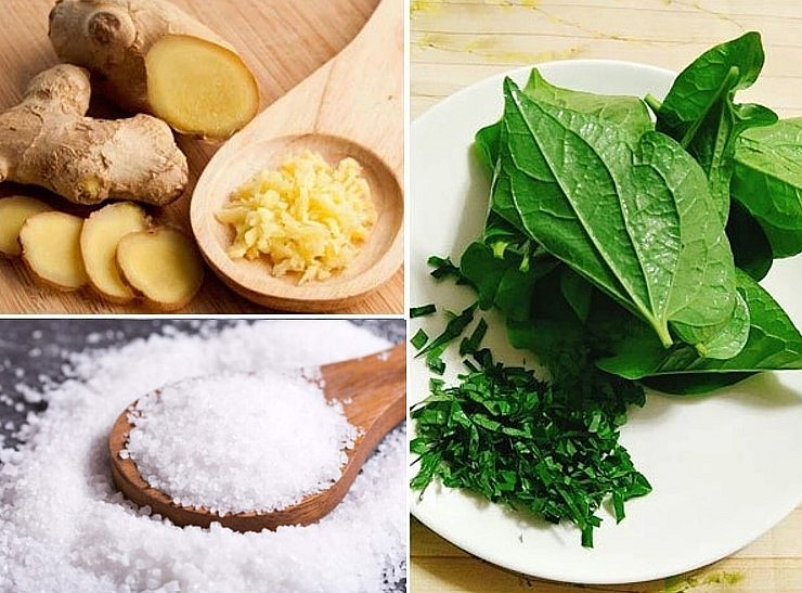 Bước 2: Đun sôi khoảng 1,5 lít nước cùng với lá lốt và gừng tươi. Sau đó, bạn cho thêm hai 2 thìa muối hạt vào và khuấy đều rồi tắt bếp.