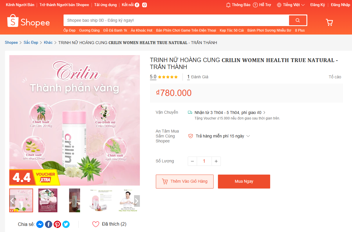 | Viên trinh nữ hoàng cung Crilin women Health được quảng cáo trên shoppe. |