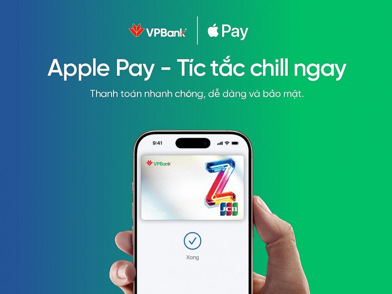 Từ hôm nay, Ngân hàng TMCP Việt Nam Thịnh Vượng (VPBank) chính thức triển khai Apple Pay cho các chủ thẻ tín dụng JCB. Apple Pay là phương thức thanh toán dễ dàng, an toàn và riêng tư tại cửa hàng, trực tuyến và cả trong các ứng dụng.