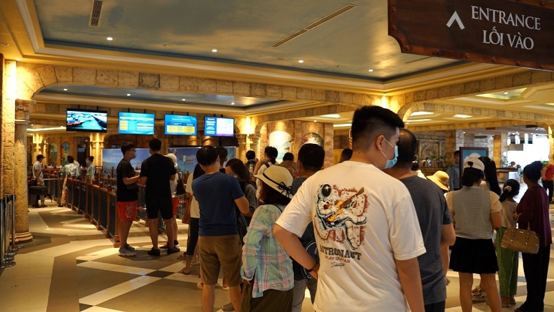 Sáng ngày mùng 2 Tết, ghi nhận tại ga đi cáp treo An Thới và Hòn Thơm, Phú Quốc là không khí náo nhiệt, tưng bừng khi từng đoàn du khách tấp nập xếp hàng mua vé cáp treo và tham gia các trò chơi. Năm nay, do ảnh hưởng của Covid-19, thay vì đi nhóm lớn, đông người theo tour, du khách du lịch theo các nhóm nhỏ, nhóm gia đình, đề cao tính an toàn.