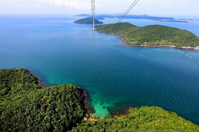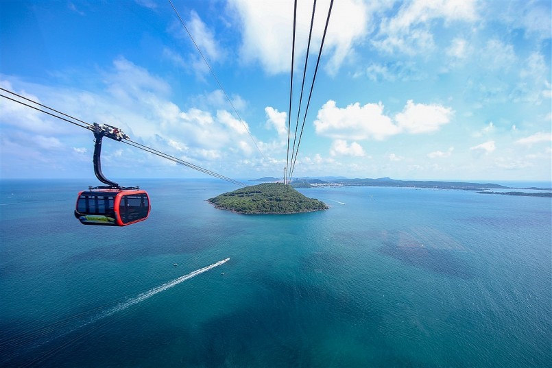 Điểm khởi đầu của hành trình đến với mặt trời nơi đảo thiên đường bắt đầu từ ga đi An Thới. Thay vì đi thuyền hay cano như tới các hòn đảo khác, du khách sẽ được vi vu lưng chừng trời trên hệ thống cáp treo vượt biển dài nhất thế giới để tới Hòn Thơm. Trên hành trình 20 phút vắt ngang mặt biển, du khách sẽ được chiêm ngưỡng một trong những khung cảnh ngoạn mục nhất của Phú Quốc.