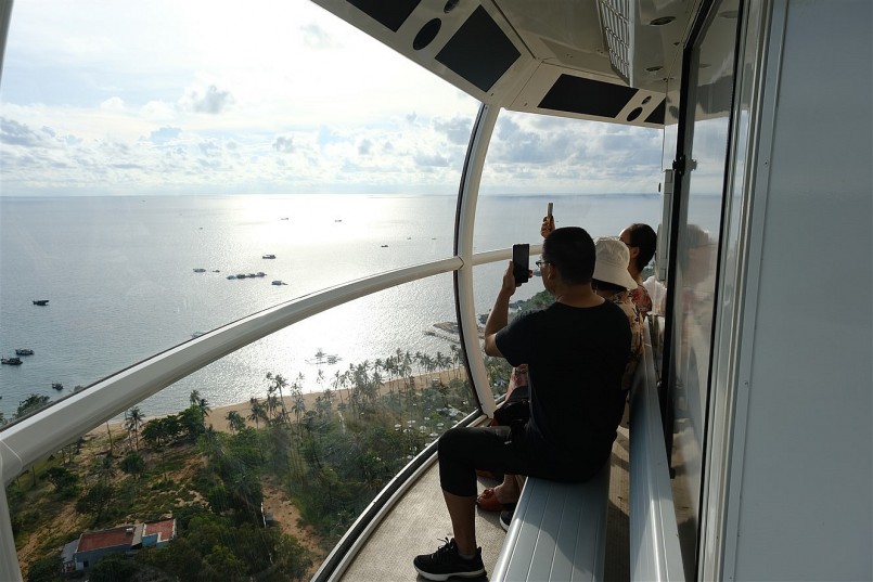 Tất cả những gì bạn cần làm là bước vào bên trong cabin “Mắt Đại Bàng”, sau đó thư giãn khi chiếc cabin từ từ nâng lên đến độ cao 120m rồi xoay tròn 360 độ. Thu vào tầm mắt lúc này là những mảng xanh trác tuyệt của Đảo Thiên Đường Hòn Thơm, một tuyệt tác thiên nhiên khiến bạn đã đến là không muốn về.