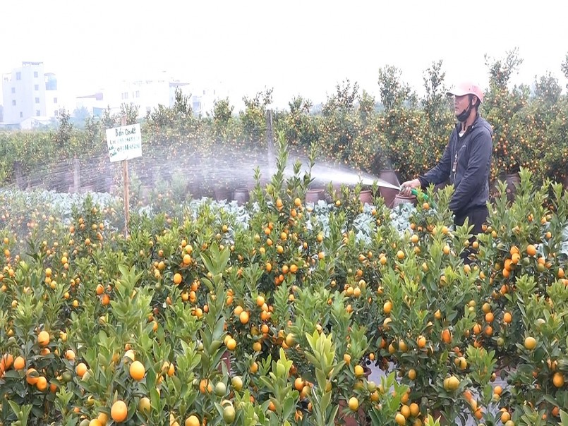 Thời điểm này, các nhà vườn trên địa bàn huyện Văn Giang (tỉnh Hưng Yên) đang tích cực chăm sóc hoa, cây cảnh; thường xuyên theo dõi diễn biến của thời tiết để có phương án điều chỉnh biện pháp chăm sóc hoa, cây cảnh, bảo đảm bung nở đúng dịp Tết Nguyên đán Quý Mão.