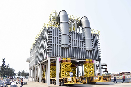 Với trọng lượng và kích thước "khủng" (chiều dài 32m, cao 18m, rộng 18m và nặng 654 tấn), các chuyên gia phải mất 10 ngày để đưa các thiết bị này lên tàu với sự hỗ trợ của hệ thống xe bánh rết chuyên dụng.