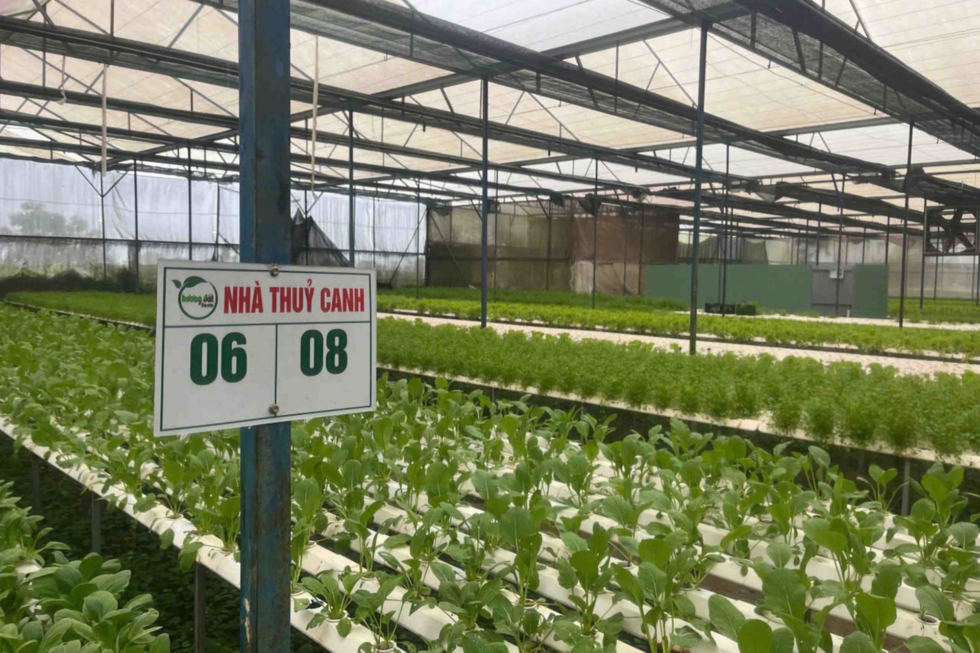 Trong đó có 4 ha được đầu tư hệ thống nhà kính hiện đại để chuyên canh nhiều loại rau củ quả như cải xanh, cải ngọt, xà lách, dưa leo, cà chua, cà rốt, khoai môn, khoai lang… Các loại rau ăn lá được trồng hoàn toàn trong khu khép kín này, riêng xà lách và rau gia vị áp dụng công nghệ thủy canh trên diện tích khoảng 3.000 m².