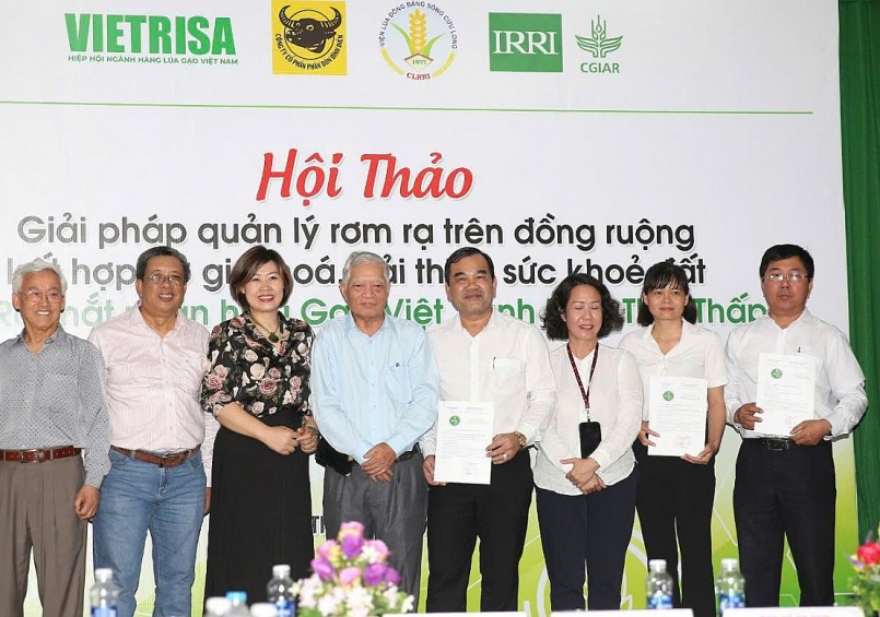 Hội thảo "Giải pháp quản lý rơm rạ trên đồng ruộng kết hợp cơ giới hoá và cải thiện sức khỏe đất và ra mắt nhãn hiệu Gạo Việt xanh phát thải thấp" vừa diễn ra tại Viện Lúa Đồng bằng sông Cửu Long (TP.Cần Thơ) do Hiệp hội Ngành hàng lúa gạo Việt Nam (VIETRISA) phối hợp với Viện Nghiên cứu Lúa quốc tế (IRRI) và Công ty cổ phần Phân bón Bình Điền tổ chức, với sự tham dự của lãnh đạo TP. Cần Thơ, Cục Trồng trọt và Bảo vệ thực vật (Bộ Nông nghiệp và Môi trường), cùng đông đảo các nhà khoa học, doanh nghiệp và nông dân.