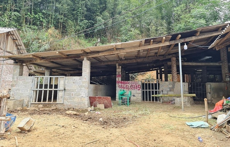 | Dịch vụ xây nhà nghỉ cho trâu bò rất độc đáo ở xã Nghiên Loan. |