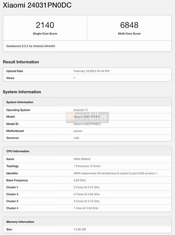 Danh sách Geekbench cũng tiết lộ rằng thiết bị sẽ chạy trên hệ điều hành Android 14 ngay khi xuất xưởng. Với những thông số kỹ thuật này, điện thoại thông minh đã đạt được 2140 điểm trong các bài kiểm tra lõi đơn và 6848 điểm trong các bài kiểm tra đa lõi.