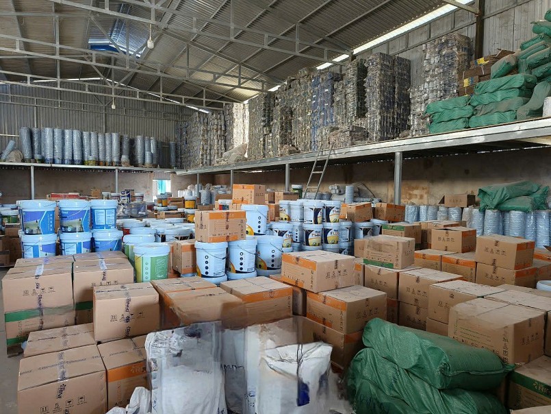 Nhà kho chứa số sơn vi phạm . |