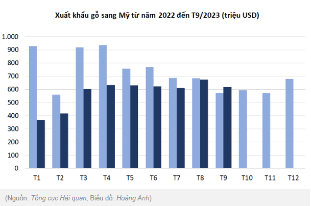 Trong tháng 9, xuất khẩu gỗ sang Mỹ đã dần phục hồi, đạt 617 triệu USD, tăng 7,5% so với tháng 9/2022.
